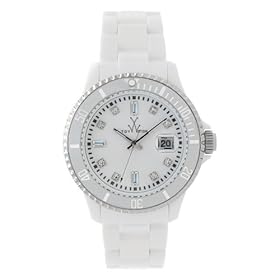 It's ceramic...no it's plastic...IT'S PLASTERAMIC! ® Chic ceramic looking plastic features crystal markers and a rotating bezel.