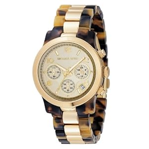 MICHAEL Michael Kors Women's Chronograph Goldtone Mixed Metal and Tortoise Acrylic Bracelet Watch Description